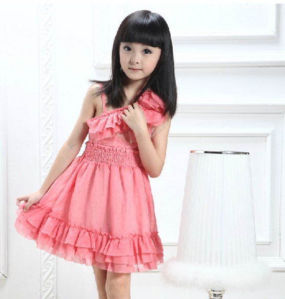 Summer Little Girls Party Dress , One Shoulder 100% Polyester Pink Images |