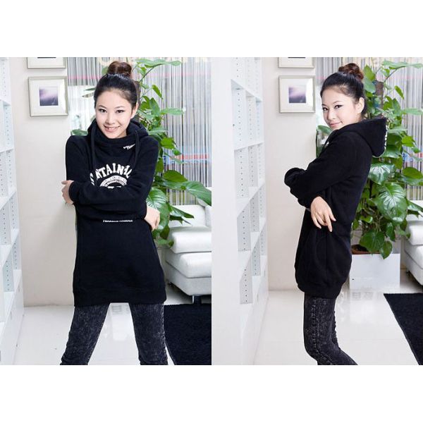 Girls / Ladies Hooded Sweatshirts , Black / Yellow / White Cotton