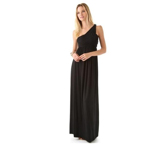 One Shoulder Black Jersey Dress , Ladies Ankle Maxi Dress Cotton